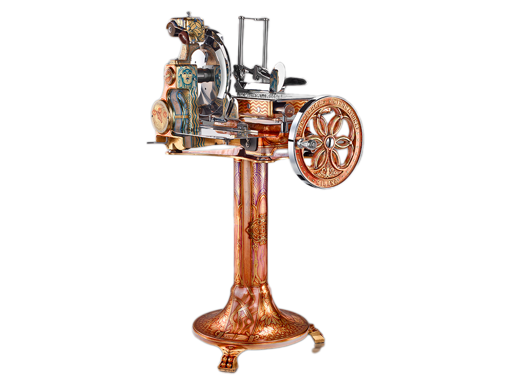 Der Stil, welcher auf diesem Berkel Modell B114 gefeiert wird, ist kein floraler Frühlingsstil, sondern eine Homage an bahnbrechende Erfindungen & Ereignisse seiner Zeit. So erinnert das Kunstwerk an Guglielmo Marconi, welcher mit seinem Grammo-Telefon weltweit die drahtlose Kommunikation in Gang setzte. Es erinnert an den ersten Flug des deutschen Zeppelins, den Bau der transsibirischen Eisenbahn, Siegmund Freud, welcher Träume neue interpretierte und an die Brüder Lumière, welche das erste Farbfotoverfahren industriell realisiert haben. Das Kultobjekt steht symbolisch für eine Zeit, in der Mussolini an die Macht kam, der Bauhausstil sich durchsetzte, die ersten Automobile gebaut und zu Jazzmusik getanzt wurde.