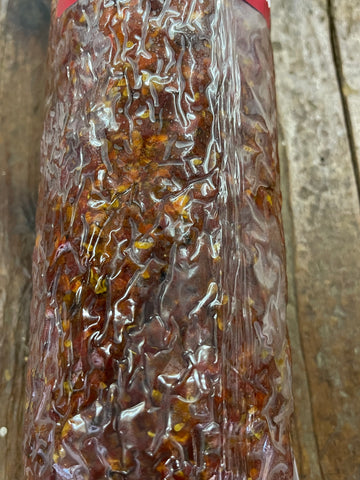 Die Salsiccia Extra mit Tomate ist eine authentische spanische Rohwurst, die mit sonnengereiften Tomaten verfeinert wird. Das Zusammenspiel aus hochwertigem Schweinefleisch, traditionellen Gewürzen und der natürlichen Süße der Tomate verleiht dieser Spezialität ein besonders rundes, mediterranes Aroma.